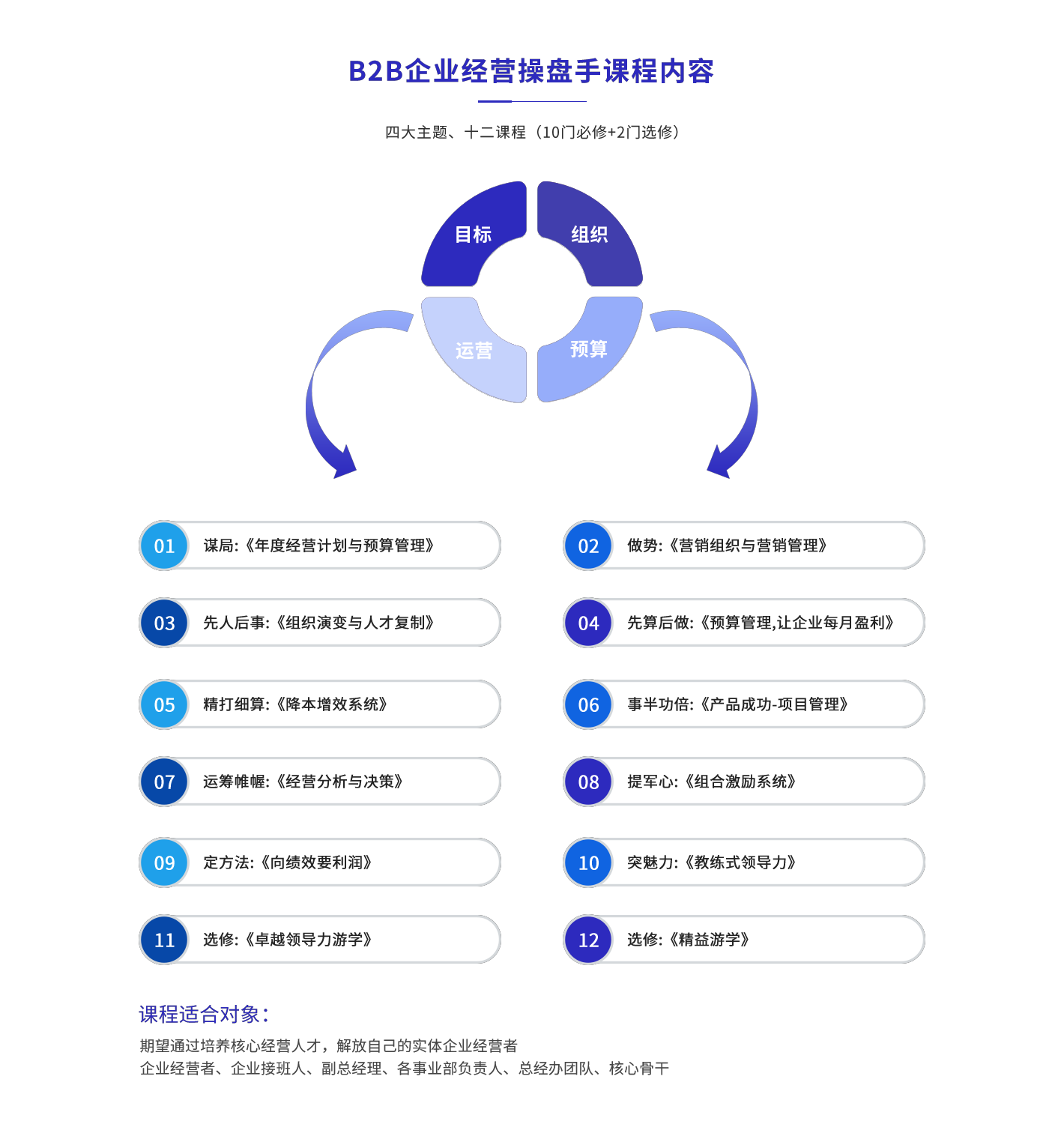 用系統(tǒng)、實(shí)效、落地的課程,把核心管理人員培養(yǎng)為能打勝仗的經(jīng)營(yíng)者