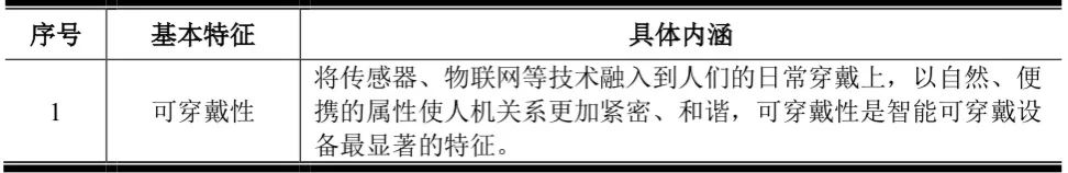 智能可穿戴設(shè)備是物聯(lián)網(wǎng)技術(shù)、移動互聯(lián)網(wǎng)、云存儲技術(shù)和大數(shù)據(jù)技術(shù)不斷融合創(chuàng)新的最佳載體,具有可穿戴性、可移動性、可持續(xù)性、可交互性以及簡單操作性五大基本特征,各個特征的具體內(nèi)涵如下表所示: