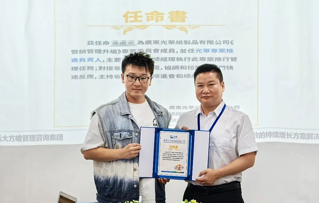 廣東光華紙制品有限公司(以下簡稱“廣東光華”)作為深耕行業(yè)多年的港資企業(yè),始終秉持“與時俱進”的拼搏精神,在半個多世紀的發(fā)展歷程中不斷突破自我。面對當(dāng)下市場競爭的新挑戰(zhàn)與客戶需求的新升級,廣東光華主動求變,攜手遠大方略正式啟動《營銷管理升級》咨詢項目,旨在通過系統(tǒng)性的營銷體系優(yōu)化、專業(yè)能力的深度賦能,為企業(yè)注入發(fā)展新動能,助力企業(yè)突破瓶頸,實現(xiàn)可持續(xù)增長