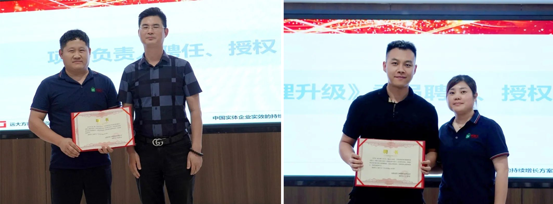 會上,潘總和李總對遠(yuǎn)大方略項(xiàng)目組進(jìn)行了聘用授權(quán),為項(xiàng)目小組關(guān)鍵人員頒發(fā)了聘書,并簽訂誓言集體宣誓,鼓勵大家全力以赴投身變革,共同創(chuàng)造更具競爭力的企業(yè)。