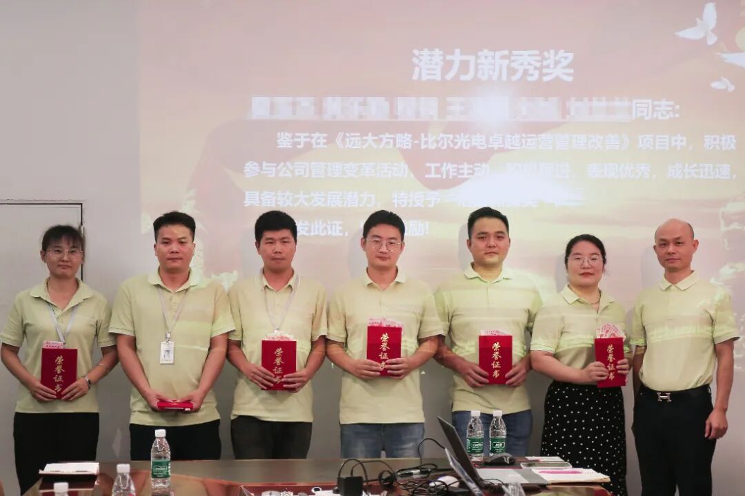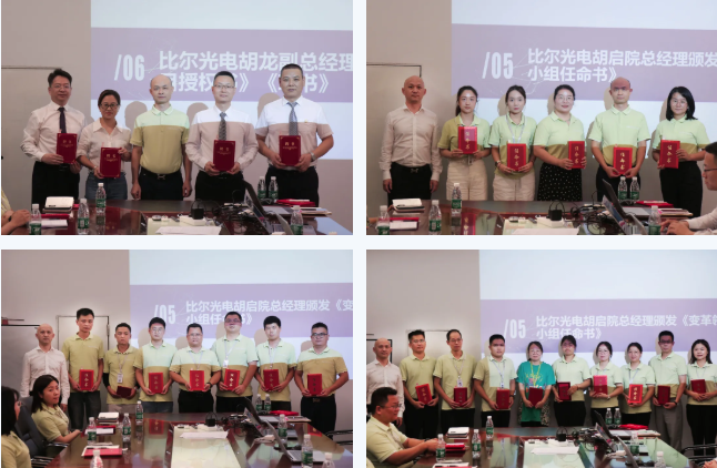 為促進(jìn)項(xiàng)目的有效落地,明確各崗位職責(zé),強(qiáng)化責(zé)任意識(shí),會(huì)上比爾光電領(lǐng)導(dǎo)為遠(yuǎn)大方略項(xiàng)目組頒發(fā)了授權(quán)書,為老師和變革小組的核心成員頒發(fā)了聘書。