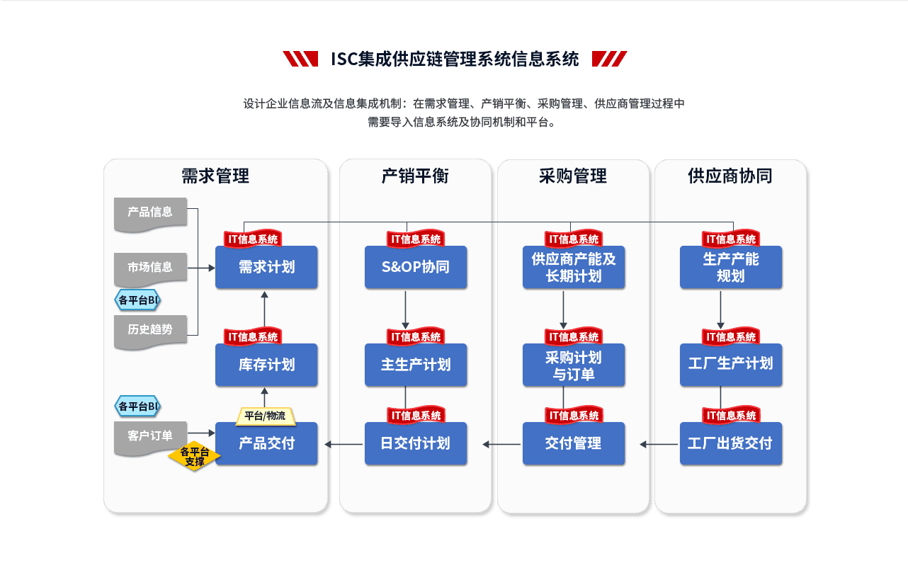 2、輔導(dǎo)模塊:推行ISC集成供應(yīng)鏈管理,主要圍繞產(chǎn)品運(yùn)營管理、接單規(guī)則和庫存管理、銷售預(yù)測(cè)管理、S&OP管理、公司計(jì)劃模式優(yōu)化、物料管理體系等